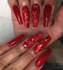 Apply your red glitter the same way under your gold glitter. Paint one of your finger a bright silver. Sometimes you just want to have some fun with your nails. Red acrylic nails are gorgeous on their own, but they get a major upgrade when they're topped with red glitter. These glam nail designs will have your fingers looking fashionable in no time. With your brush create what jennisse calls a smile under the glitter to your liking. You might love those black nail designs on a friday night, but aren't they a little much for sunday brunch? Red & gold acrylic nails by ayano. Christmas nails with festive design you want to try that is super fun. Add some interest to the color combination with a matte finish. Red has so many different nail designs. Check out our acrylic nails short ideas for the best acrylic nail colors such as light pink, yellow and more to get the perfect manicure that you are every woman loves these cute nails color especially when this gorgeous color mixed with other colors such as silver glitter and pink glitter in coffin shaped. The most common red acrylic nails material is plastic.
